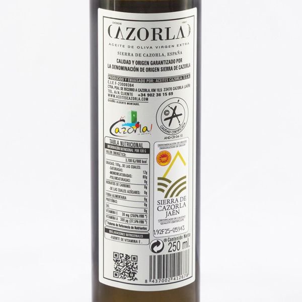 Šis aukščiausios kokybės extra virgin alyvuogių aliejus 250ml – šalto spaudimo, 100% natūralus, gaminamas Sierra de Cazorla regione Ispanijoje, puoselėjant ilgametes tradicijas nuo 1951 metų. Tai premium klasės aliejus, pasižymintis intensyviu skoniu, išskirtiniu aromatu ir vertingomis maistinėmis savybėmis.